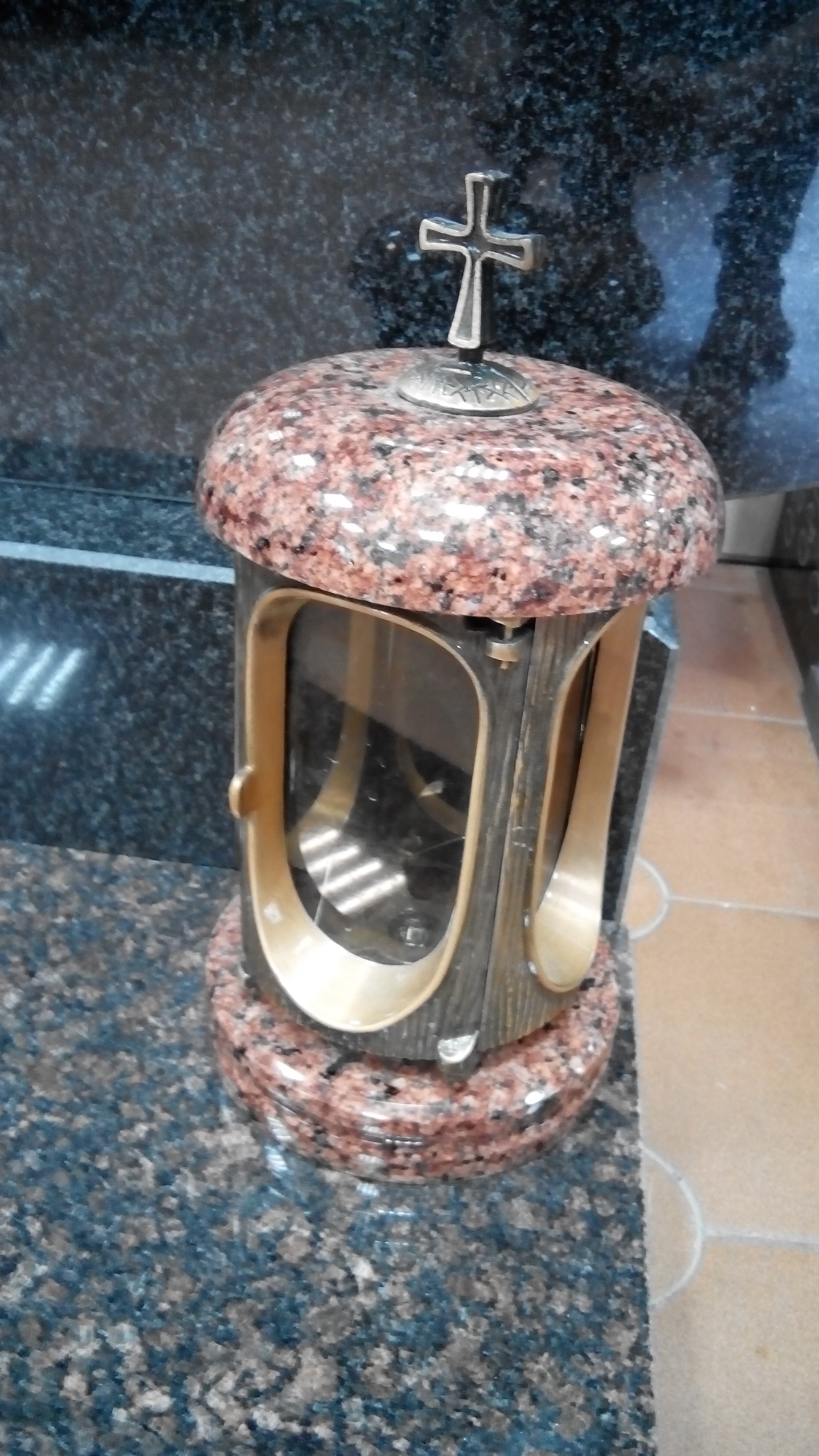 Лампады из гранита со стеклянными вставками, которые обеспечивают защиту фитилей и не допускают попадания влаги внутрь.
