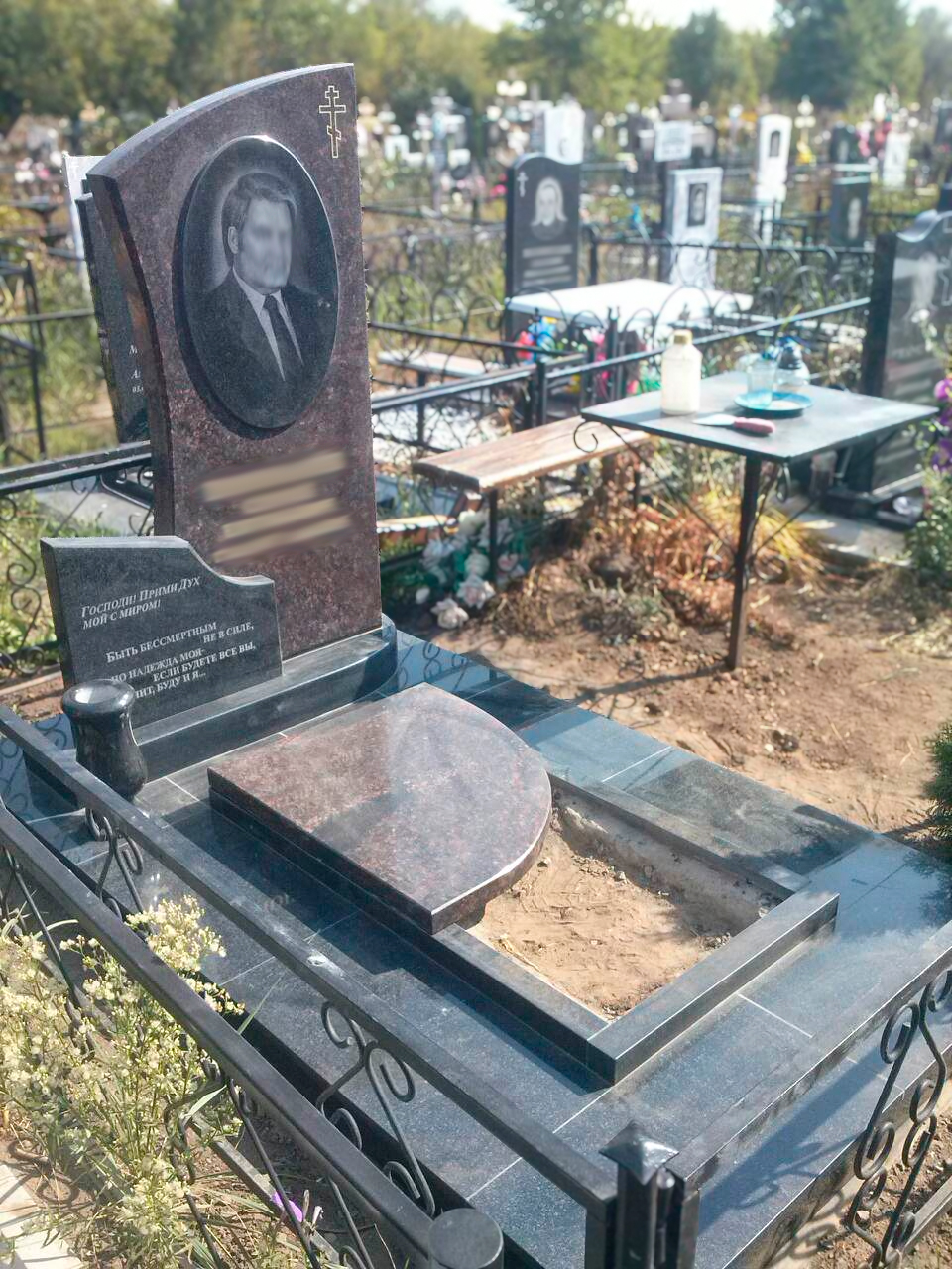 Дополнительно оплачиваются: гравировка (портрет, ФИО+даты), подготовка комплекта, кованые и бронзовые элементы, установочные работы, доставка